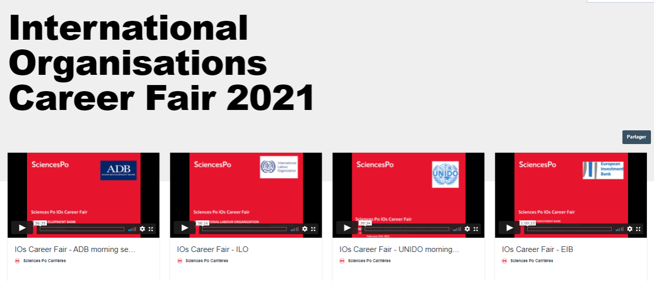 Important ! Pour voir et revoir les vidéos , rendez-vous sur la page vimeo de Sciences Po Carrières en indiquant le mot de passe "IOsFair2021"