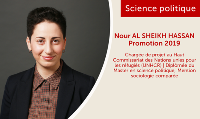Nour, Chargée de mission au Haut-Commissariat des Nations unies pour les réfugiés (UNHCR), diplômée du Master en science politique
